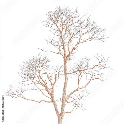 Fototapeta premium A Bare Leafless Tree Stands Tall Against White