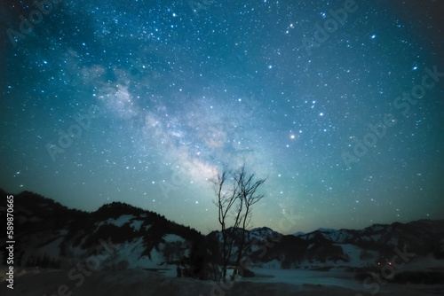 © Deneb Cygni, Fototapeta premium A bare tree and the milky way
