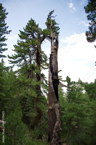 © Vedrana, Fototapeta premium A bare tree in the forest struck and burned by lightning