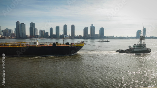 © ERIK BERGIN PHOTOS, Naklejka premium A barge is being towed on the East River, New York City.