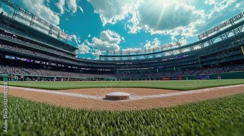© Fotograf, Fototapeta premium A baseball field with a ball in the middle, perfect for sports and outdoor activities