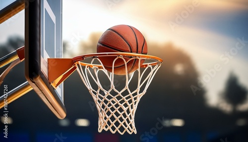 © dmnkandsk, Fototapeta premium A basketball flying into the basket in the court