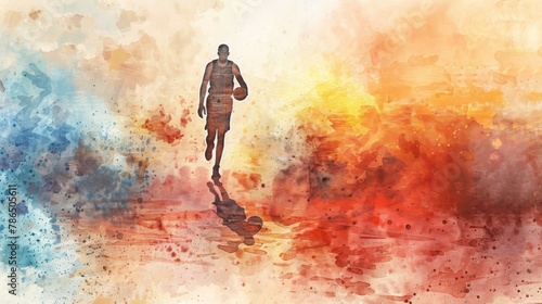 Naklejka premium A basketball on the background of a watercolor painting illustration