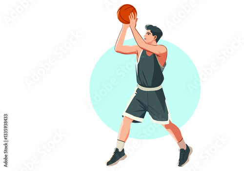 © Wipaporn, Fototapeta premium A basketball player is passing the ball into the hoop.