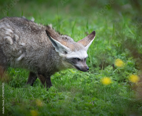 © Mark, Fototapeta premium A Bat Earred Fox walking through the grass.