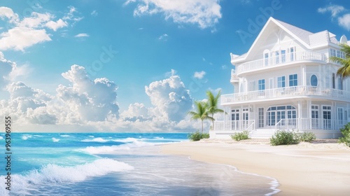 © wudu_8, Fototapeta premium A beach house blueprint with a detailed 3D model