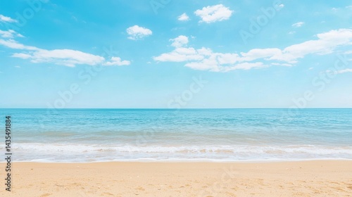 © Дмитрий Петров, Fototapeta premium A beach scene with a clear blue sky and white clouds.
