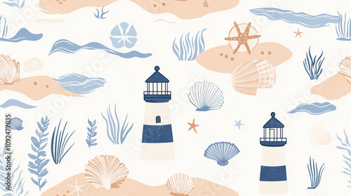 Naklejka premium A beach scene with a lighthouse and a starfish