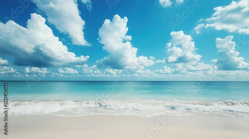 © visart, Fototapeta premium A beach with a clear blue sky and a few clouds