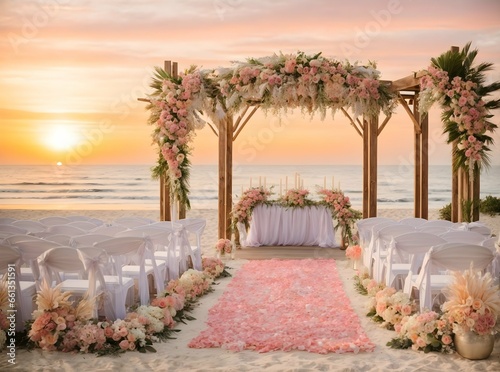 Fototapeta premium A Beachfront Sunset Wedding Hall