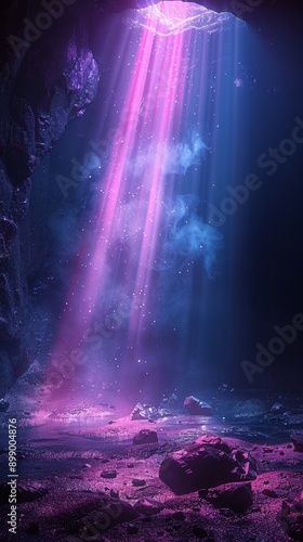© Elle Arden , Naklejka premium A beam of blue light in a purple background.