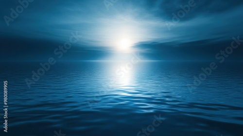 © Ti Studio, Obraz premium A beam of soft blue light casting a glowing reflection on water, creating a serene and peaceful atmosphere.
