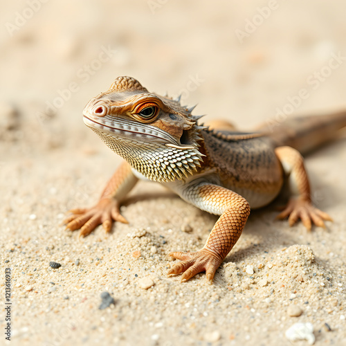 © shahryar, Naklejka premium A bearded dragon in the Desert on isolated background