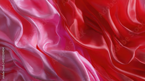 Obraz premium A beautiful abstract background featuring elegantly draped, shiny pink and red satin fabric with soft folds, creating a luxurious and vibrant textile texture.