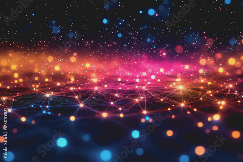 © PHAISITSAWAN, Obraz premium A beautiful Abstract digital technology background with colorful network connection lines.