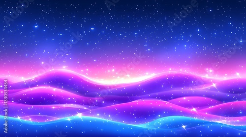 Fototapeta premium A Beautiful Abstract Landscape Featuring Glowing Hills Under A Starry Sky