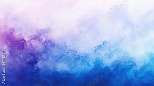 © Thamonchanok, Naklejka premium A beautiful abstract watercolor background featuring soft hues of purple, blue, and white, ideal for creative projects.