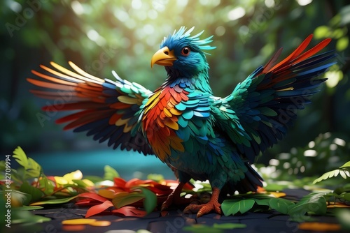 Fototapeta premium a beautiful amazon parrot in the treetops in a tropical rainforest, bright...