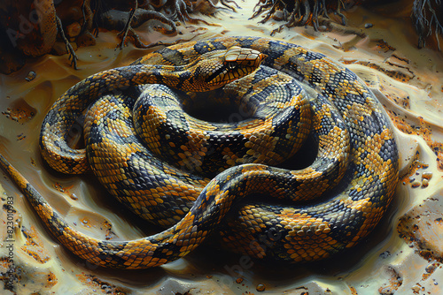 Obraz premium A beautiful and deadly snake, the Eastern Diamondback Rattlesnake, is coiled...