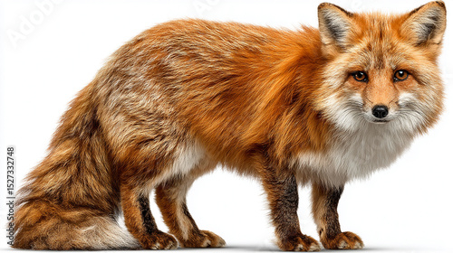 © Damai, Fototapeta premium A Beautiful and Detailed Image of a Red Fox Standing on a White Background