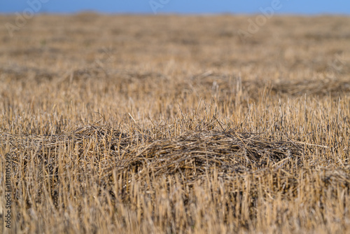 Obraz premium A Beautiful and Expansive Golden Wheat Field That Is Stretching Beneath a Clear Blue Sky