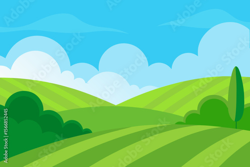 © Radha Rani, Obraz premium A Beautiful And Sweeping Vector Illustration Of Rolling Green Hills Under A Clear Sky