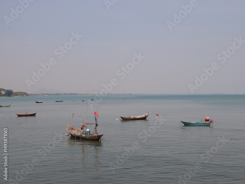 © diczman, Naklejka premium A beautiful and tranquil seascape featuring fishing boats gently floating on calm waters