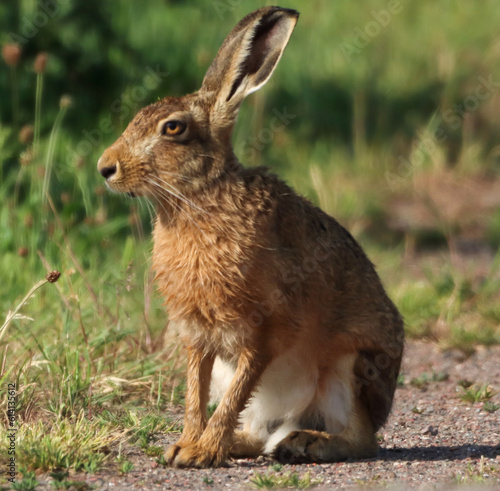 © NW_Photographer, Obraz premium A beautiful animal portrait of a single posing Hare.