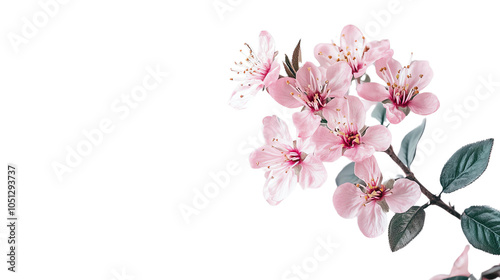Obraz premium A beautiful arrangement of pink cherry blossoms with lush green leaves,...