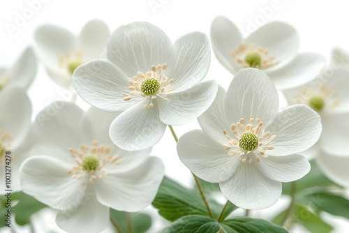 Fototapeta premium A beautiful arrangement of white flowers accompanied by vibrant green leaves...