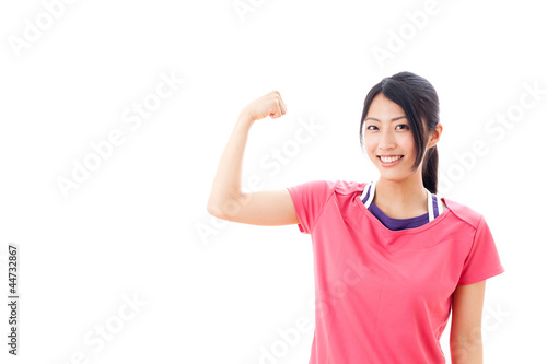 Fototapeta premium a beautiful asian woman showing muscle on white background