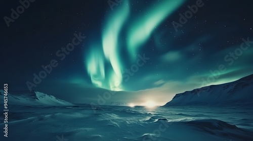 Fototapeta premium 21. A beautiful aurora borealis dancing across a night sky over a snowy landscape