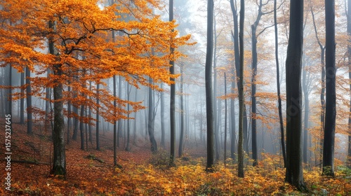 Fototapeta premium A beautiful autumn forest scene with vibrant orange colored foliage