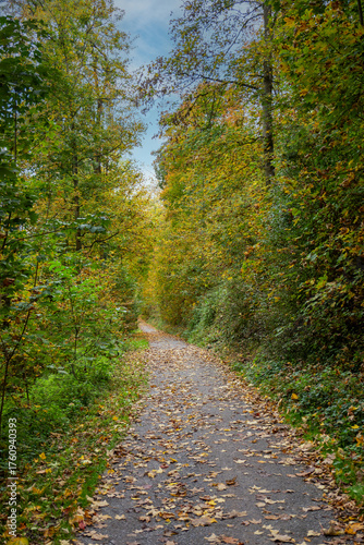 © Alexander, Fototapeta premium ​A beautiful autumn path through the forest.
