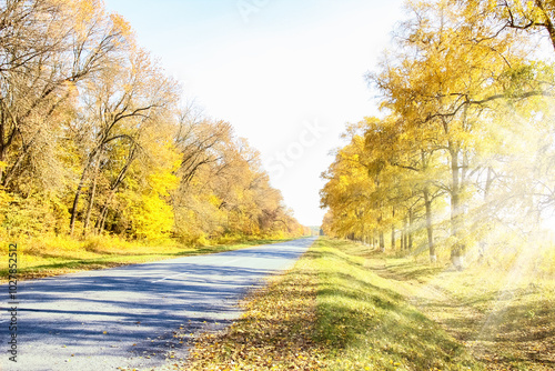 © Kostia, Obraz premium A Beautiful autumn road on nature park background
