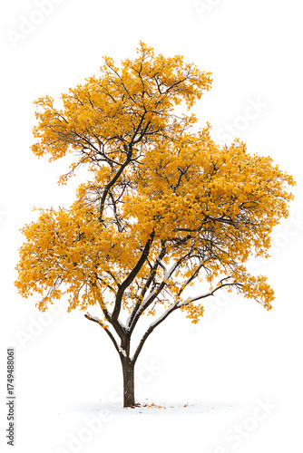 Fototapeta premium A beautiful autumn tree with vibrant golden orange leaves against a clean white background