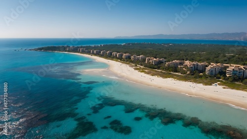© Marius, Fototapeta premium A beautiful beach on a sunny day with crystal clear blue sea and a cloudless sky