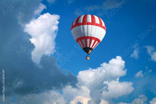 Fototapeta premium A beautiful big balloon in a bright blue sky between white clouds