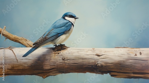 Obraz premium A beautiful bird with vibrant blue feathers perched on a log, captured in an...