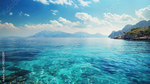 © Synthetica, Fototapeta premium A beautiful blue ocean with a clear sky above