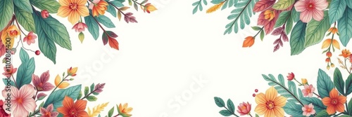 © Chalermrach, Obraz premium A beautiful botanical pattern featuring vibrant flowers and leaves, with an empty space in the center for text or graphics, abstract, design