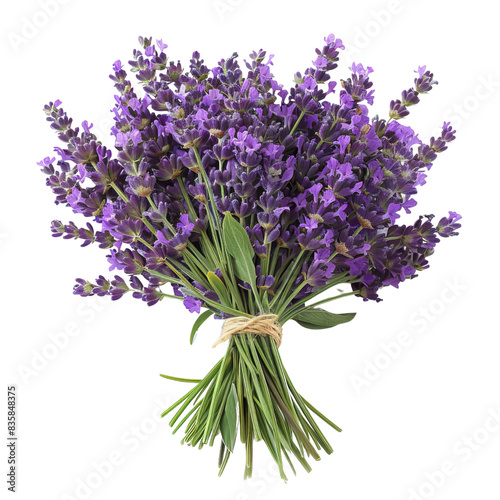 Fototapeta premium A beautiful bouquet of fresh lavender flowers tied with twine, perfect for...