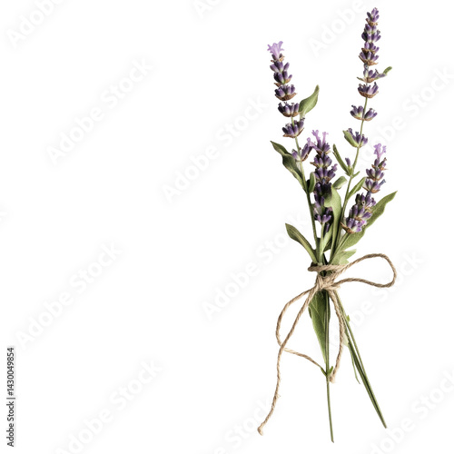 © Tasnuva, Naklejka premium A beautiful bouquet of lavender flowers tied with twine, symbolizing calm and serenity in a natural setting. on transparent background