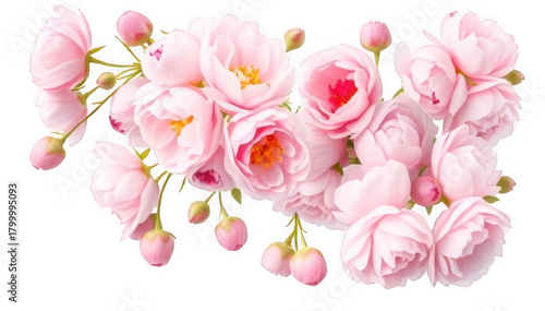 © Razu, Naklejka premium A beautiful branch of delicate light pink blooming roses and buds isolated on a white background.