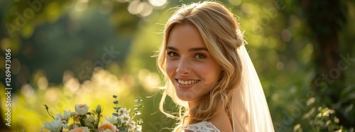 © Fitriaa, Obraz premium A Beautiful Bride in a Garden