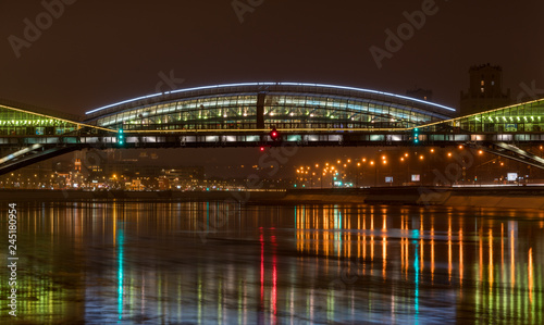 Fototapeta premium a beautiful bridge illuminated by a multitude of illuminations against the backdrop of the night river