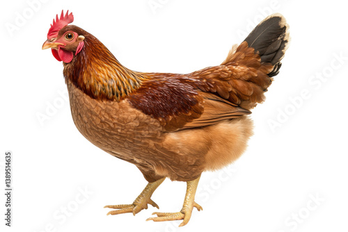 © Khadija, Fototapeta premium A beautiful brown hen isolated on white background showcasing rich plumage and vibrant colors in a