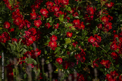 Obraz premium A beautiful bush adorned with plenty of vibrant red flowers and lush green...