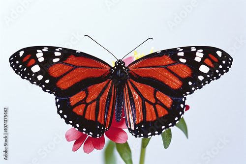 © Infinity Lens, Fototapeta premium a beautiful butterfly on a vibrant blooming flower in a spring field.