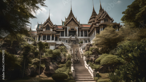 Fototapeta premium A beautiful castle in a mountain. AI generative.